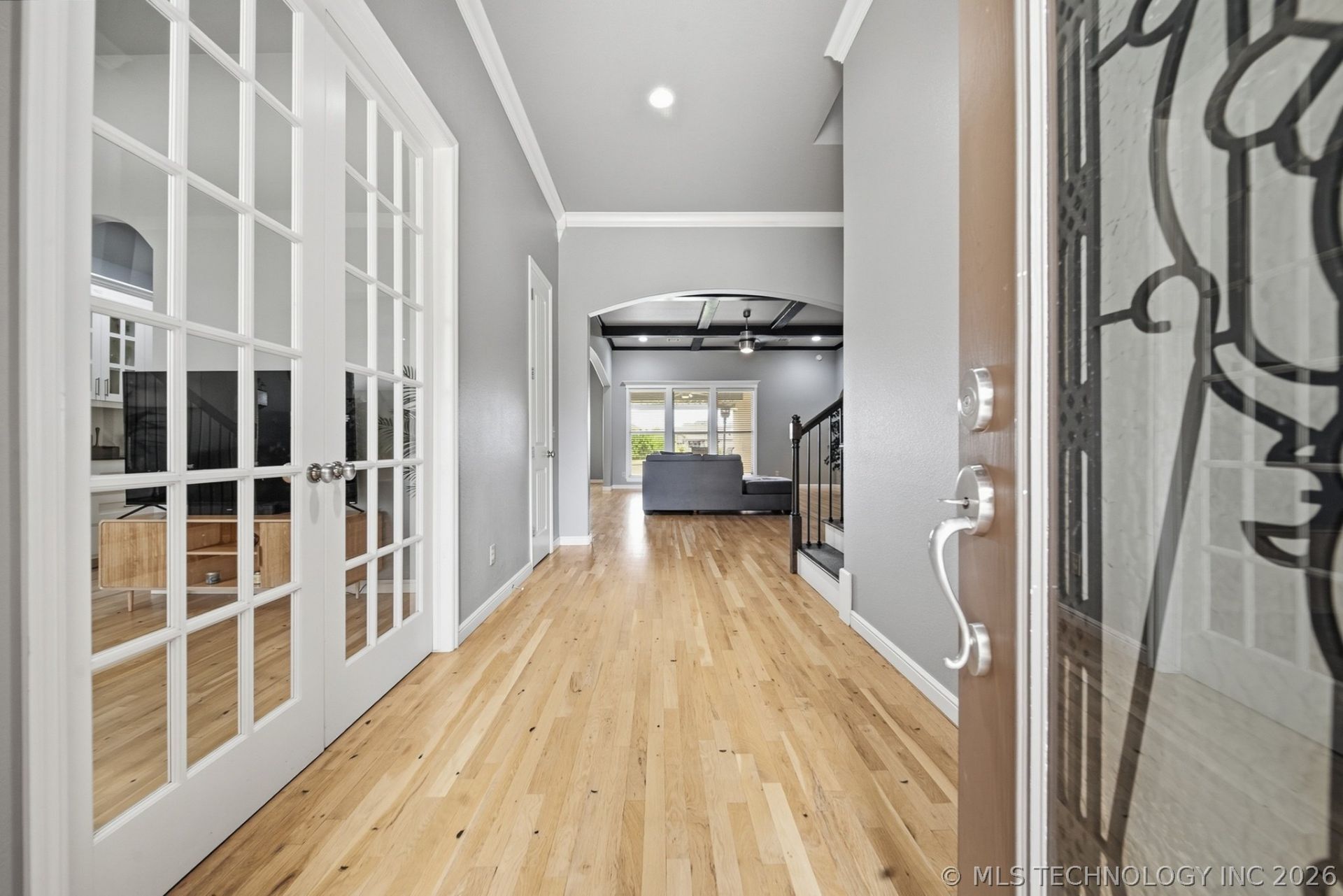This stunning custom-built home is located in the highly sought-after and exclusive neighborhood of The Ridge at South County in Bixby. Home has private views of neighborhood ponds with no direct backdoor neighbors! No farmhouse here! This stunning home is a perfect blend of a modern and casual comfort! Hardwood floors flow from the entrance, throughout the main living area, and to the master bedroom - that has also been recently upgraded with a brand new master bathroom. The home's luxurious master suite comes complete with a HUGE walk-in shower and separate soaking tub, perfect for relaxing after a long day. 4 spacious bedrooms + 3 full bathrooms + office + home theater room + bonus flex room - so much ample space for all your needs - add a 5th bedroom? have a completely separate living space upstairs? another office? The possibilities are endless for adapting to your needs. With 3 of the bedrooms and 2 bathrooms downstairs, plus a bedroom, bathroom and 3 flex rooms upstairs - there are so many flexible private living space options. The open-concept kitchen and living area are perfect for entertaining guests, while the pantry and butler's pantry provide plenty of storage options. With its beautiful kitchen with pull-out shelves, built-in stainless appliances, and granite countertops, this home is a perfect blend of luxury and comfort. The home's exterior is just as impressive as the interior, with a covered front and back patio that opens up to neighborhood ponds, providing a serene and tranquil atmosphere. The three-car garage includes a storm shelter, ensuring your family's safety during inclement weather. Enjoy all the benefits of living in a high-end neighborhood, including a community pool and year-round activities organized by the HOA. Don't miss your chance to view this stunning property and make it your new dream home today!